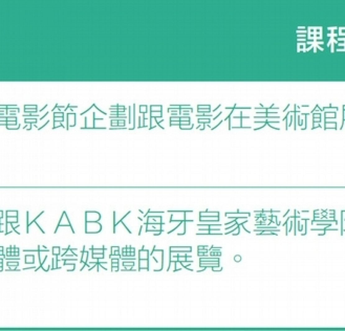 策展的課程部分,主要在教學生如何研究分析藝術作品並產生有理論深度的展覽。同時也聚焦在討論,什麼樣的作品內容比較適合怎麼樣的展覽形式,並在期末時撰寫展覽企畫。