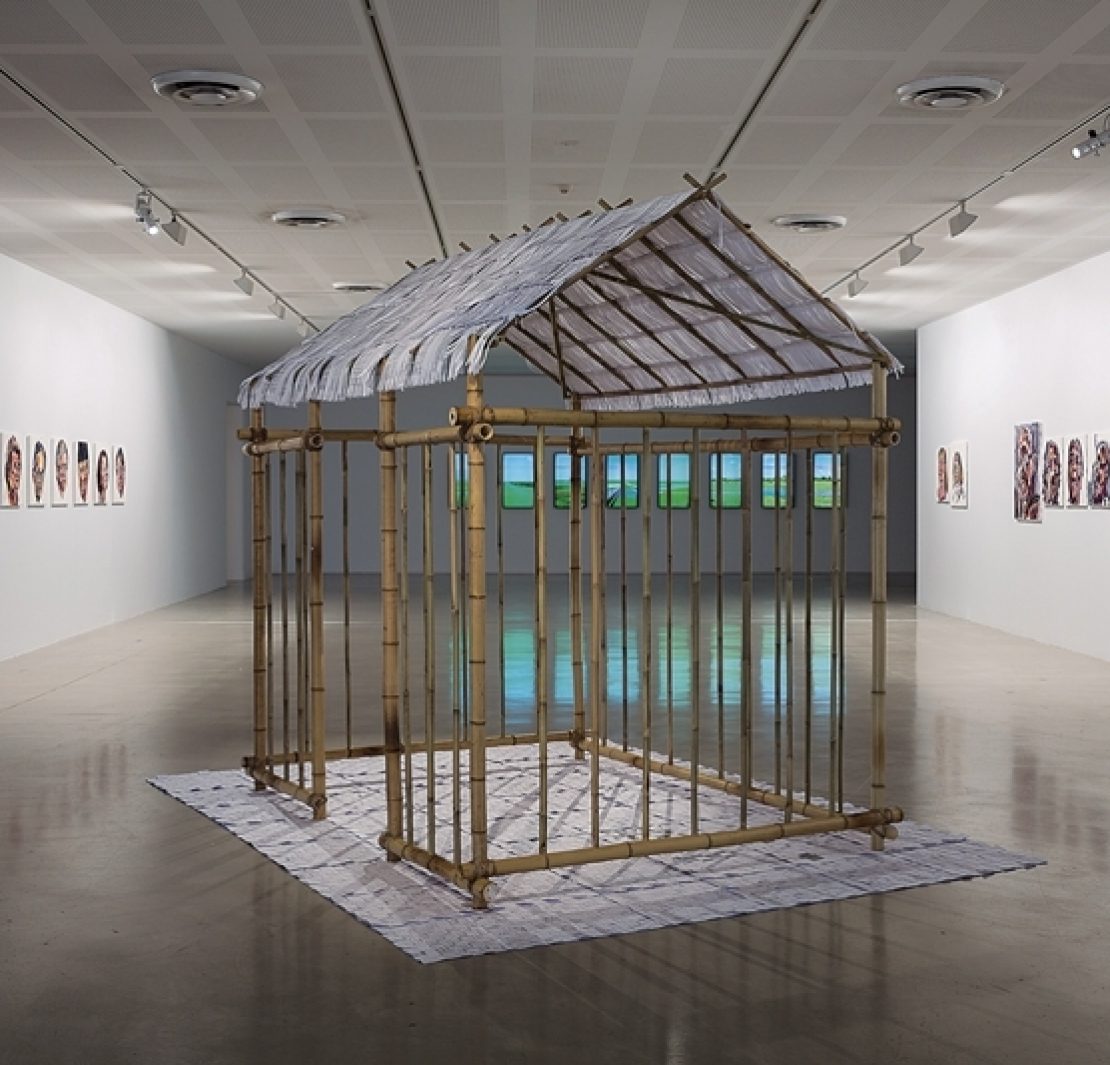 哥本Megan Cope│無題(巴拉坑)Untitled (barracoon) Bamboo, rope and shredded legal documents from the Royal Commission into Aboriginal Deaths in Custody and the Indonesian Supreme Court judicial review 250x320x245cm 2017 Credit: Document Photography 圖│Campbelltown Arts Centre