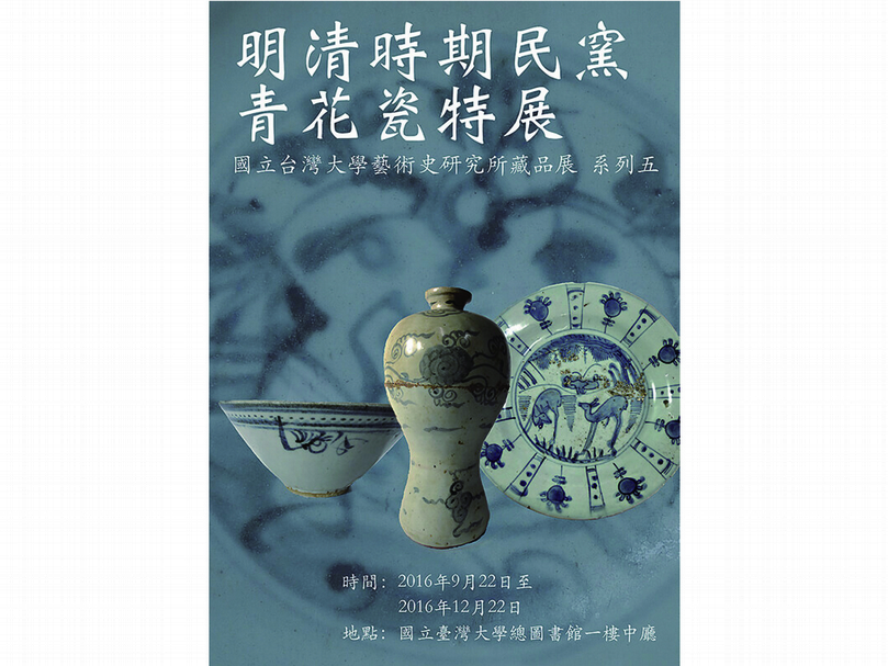 國立台灣大學藝術史研究所策劃的「明清時期民窯青花瓷特展」,9月22日至12月22日於台大總圖書館一樓中廳展出,邀請各界人士前來欣賞。「青花瓷」誕生在14世紀蒙元帝國統治下的中國,是指在淘洗精細的潔白瓷胎上,以氧化鈷青料繪製裝飾圖案,再施以透明釉後在攝氏1200度以上的高溫下一次燒成,呈現藍白對比視覺效果的硬瓷。除了在中國本地流行,青花瓷也是風靡全球的商品,在東西文化交流中扮演重要的角色。有些中國紋飾隨著青花瓷進入歐洲、西亞等地,而歐洲的寫實畫風有的也隨著訂單稿樣傳入中國。在歐洲,青花瓷帶起了中國風;在中國,青花瓷率先帶動了西洋風。隨著青花瓷的大量輸出,「China」成為了瓷器的名詞,這股藍與白的時尚也促使世界各地掀起了仿燒青花瓷的潮流。