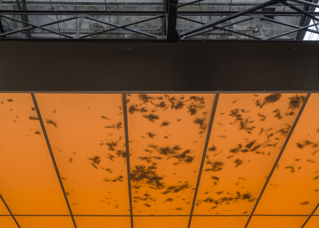 邱子晏的大型裝置《偽飛行場》設置於北美館入口大廳,靈感來自一處曾被用來欺敵的舊日軍基地遺址,透過脆弱的材質重新想像歷史中的流離。這一計畫探討歷史如何被記憶、隱藏或重寫,將檔案化為詩意抵抗的場域。