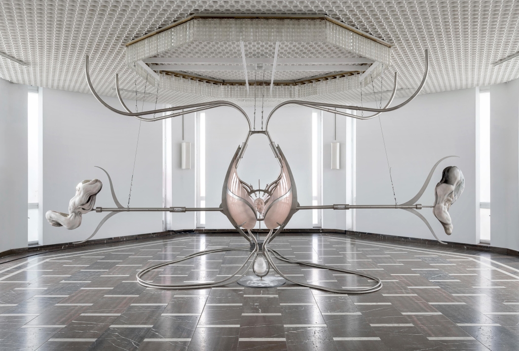 伊凡娜・巴希奇(Ivana Bašić)的裝置分布於展館內外庭院,透過以玻璃、蠟、石與金屬結合脆弱與韌性,探討「轉化」作為生存的形式——身體與社會如何在壓力下重塑自我。其中,委託創作《靈變》(Metanoia)的造型靈感源自前南斯拉夫的混凝土紀念碑,戰爭與解體的記憶,轉化為在破碎中追尋重新團結的渴望。