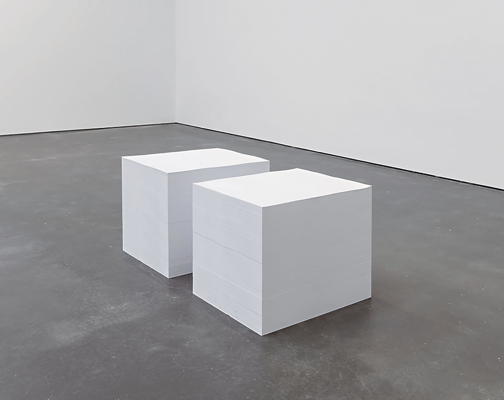 同樣的邏輯延伸至他的紙堆系列。相較於部分作品的尖銳政治性,《「無題」(1989/1990年)》則展現了更為私密的詩意。這件作品是藝術家唯一的「雙紙堆」作品,一個「成對」的母題也貫穿了他使用時鐘、燈泡等物件的創作。