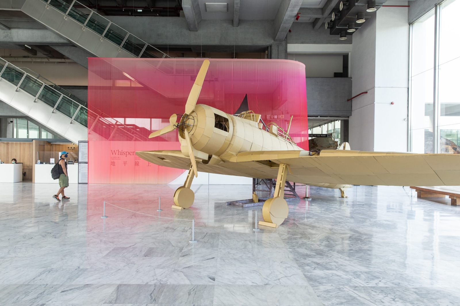 邱子晏也談到,這件作品部分源自一種「不知從何講起的共同記憶」的思慕。他以已逝外祖母為例:「她一生只會兩種語言,一種是客家話,一種是日文。」這樣的記憶如暗潮一般,看似無以名狀,卻又在家族的日常傳承中無所不在。此作同時也與地方上的廟宇文化相連,如廟宇彩繪、紙紮等傳統工藝,在錄像中也能不時聽到宗教儀式中的聲響,這些元素共同構成了非常在地的感官經驗。在現場,觀眾有機會可以親自走上由鐵架與紙板手工搭建的「零式戰鬥機複製品」,其似真非真的材質,形成一種弔詭的戲劇性張力。觀者能透過螢幕觀看一部長約15分鐘的錄像,影片借用「歷史重現」的框架,重新詮釋一部虛構的航程,模糊了歷史事實與虛構敘事的邊界。藝術家希望觀眾,理解「應該要過去,但是其實沒有完全過去的臺灣歷史」,藉由此裝置與錄像,感受歷史與虛構敘事的後座力與震動。(文/陳賦、章郡榕)