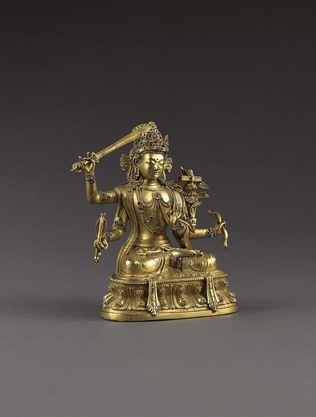 康熙年間(1662~1722)〈銅鎏金四臂文殊菩薩〉,高17公分。圖︱應真藏