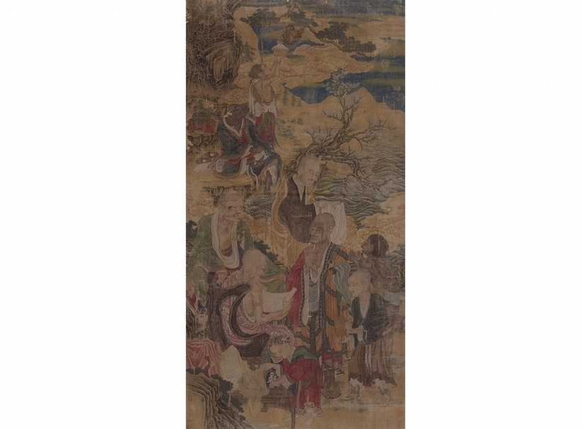 明代16世紀〈羅漢眾〉,重彩設色絹本立軸,192×97公分