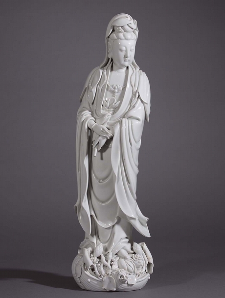 清代18/19世紀〈德化白瓷觀音立像〉,「博及漁人」款,高46.4公分。圖︱應真藏