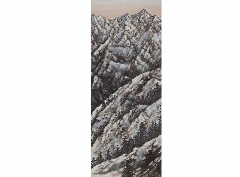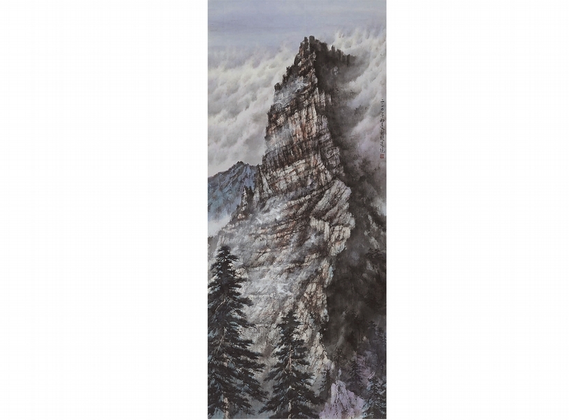 周錫珽2014年作〈大霸尖山〉,213×91公分。圖︱周錫珽