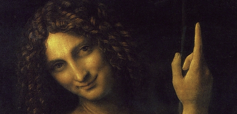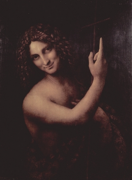 達文奇《施洗者聖約翰》.油彩、胡桃木板.69×57cm.1513–1516 (?).法國巴黎羅浮宮美術館。