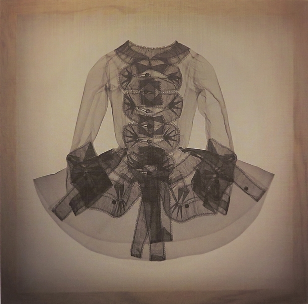 「我們習慣以肉眼所見的外在來臆測環繞身邊的人事物,而且特別容易受具美感的人或形式所吸引。然而,我喜歡挑戰這種外在表面給人們的直覺反應,內在美往往會使人感到驚豔。」談及時尚,藝術家認為大家往往會停留在表面的膚淺印象;而透過X光則可從反向來呈現潛藏在服飾內在的美麗。自十七世紀的手套、十八世紀的外套以降,乃至於高級訂製服大師Balenciaga在1950年代設計的禮服、帽子等,其講究材質與精湛作工均透過維西獨有的視覺被看見,讓觀者得以用另一種角度回顧經典華服的風采。除了在取材上拓展新面向之外,在作品的呈現方式亦有巧思;藝術家並未採用以往慣用可充分展現冷冽理性質感的水晶裱,而是因應V&A古董服飾的柔美調性,將其印製於色澤溫潤的羊毛布料,帶有半透明的赭色復古質地與木框搭配,更加烘托古董服飾的時代風華。