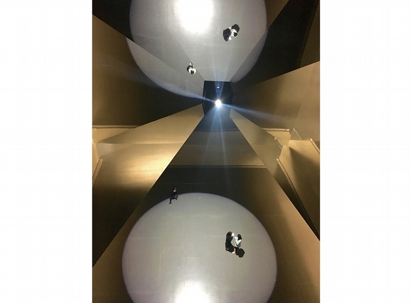 艾力阿森Olafur Eliasson∣開放的金字塔 鋼、鋁、鏡箔、木、漆(黑色)、聚光燈 2016 圖|龍美術館
