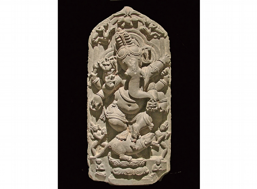 《跳舞的嘎尼夏》(注意踏在蓮花座上的蒙鼠) ,11世紀,印度北孟加拉出土,石板,56.5×25 cm,德國柏林亞洲藝術館。