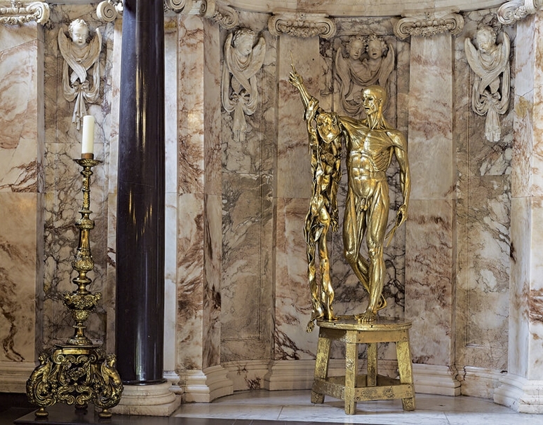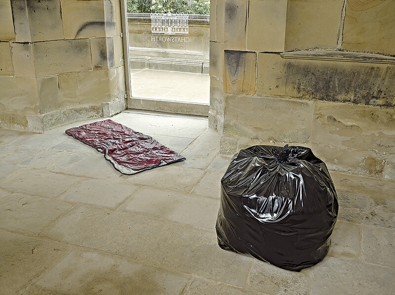 不是所有的雕塑都展在戶外。有些因為特殊關係而展於室內。像Gavin Turk的《Habitat (Burgundy)》和《American Bag》,基本上就是水泥做的一張攤平的睡袋及黑色垃圾袋。現在的主人特別交代策展人們絕對不可以將它們放置在戶外,雖然在戶外可能會比較有趣,可以看到人們對這兩件作品的反應。但不希望有被破壞的機會,因而就只好將這兩個特別的雕塑展在花園入口售票處裡,只可從大玻璃窗中看到。最近因為自己的藝廊即將開幕而受關注的藝術家達明安.赫斯特(Damien Hirst),他的《Saint Bartholomew. Exquisite Pain》則是在Chatsworth House內的教堂裡。原本教堂裡一直都有赫斯特的《Saint Bartholomew》,但是由藝術家借給Chatsworth。而今年他將之前那尊收回去。但公爵認為有點可惜,最後只好再從工作室中搬另一尊回來。