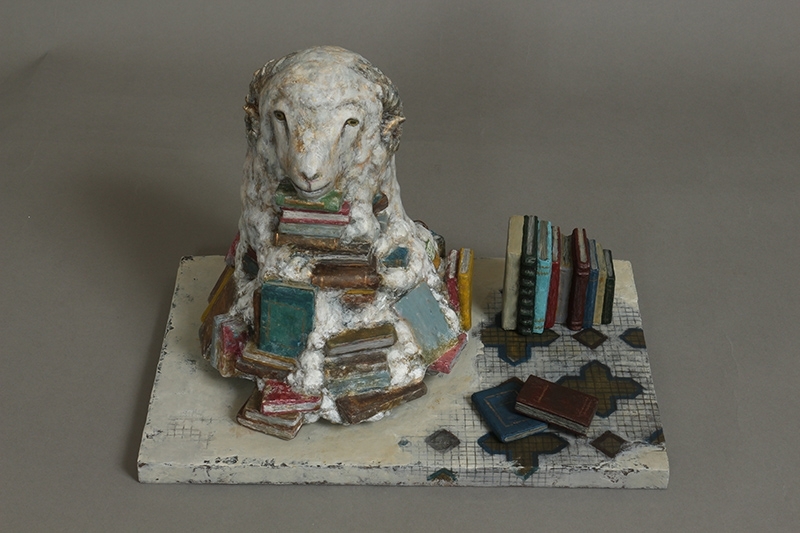 淺野淳子 羊圖書館 石粉黏土、壓克力彩 23x33x22cm 2017 圖片提供:愛上藝廊