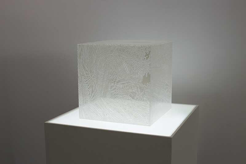 大卷伸嗣(Shinji Ohmaki),漂浮—立方,壓克力盒、絹印,29.5×29.5×29.5cm,2015,安卓藝術提供。