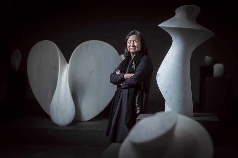 「內在之庭」的系列作品一如其公共藝術一貫的造型掌握與氣韻靈動,顯露了藝術家用藝術傳達的內在哲思與外在體悟。《櫛瓜花》、《貝中之珠》、《銀杏葉》等,顧名思義是其觀察大自然花草生態後簡化外觀而成的作品,抽象卻帶有寫實的味道。《一座山丘》自是一座山丘的造型,有趣的是她不避諱磨鑿時意外發現的水晶樣貌,反視為上天的禮物,使之宛如倒映於山丘上的山嵐,西方元素卻帶有東方寫意的特質。《丘浪》更是如此,除可作為茶几使用,上面起伏的紋理也彷彿立體化的山水畫造景。她說:「我想將那些曾經在生命中體驗過的種種,在我的作品中完整地表達,將那些生命與大自然中的愛、感激、感動與自由呈現在其中。」而從內心出發、不假外求的創作精神,恰如其分地反映在她所鍾愛的大理石上。