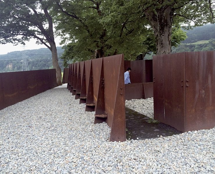 整天下來,旅程已默默進入尾聲,夕陽西下,巴士停在英國藝術家理查德.狄肯(Richard Deacon)的巨管雕塑《山》(Mountain)前,它自2006年就矗立在此,凹折彎曲之處似有生命般,與山一起生鏽、蒼老。轉身遠望,越後妻有著名的梯田,一塊、一塊,整齊劃一又蓬鬆柔軟彼此相依,如安可曲般豪氣地映現眼前。