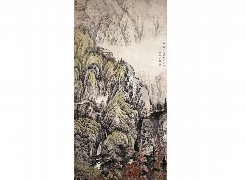 呂佛庭2003年作〈玉山日出〉,136×69公分。圖∣中華文化總會