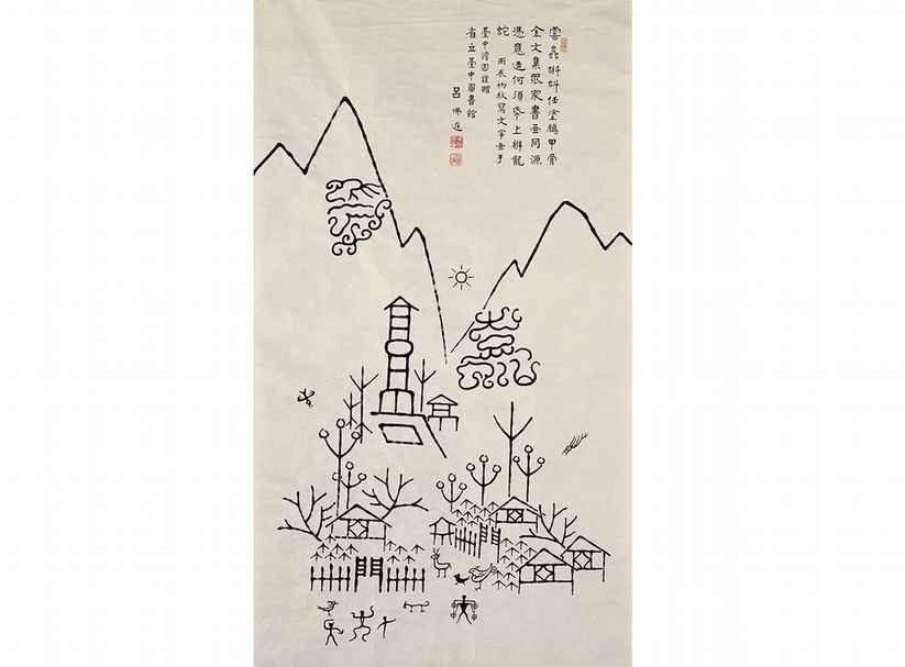 呂佛庭1976年作〈雲蟲蝌蚪任塗鴉〉,128.7×69.3公分。圖∣中華文化總會