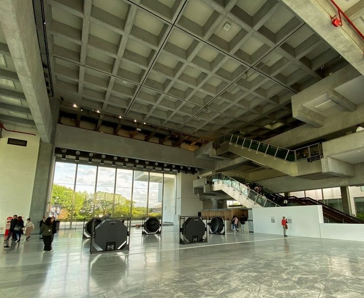 主題策劃區之一,前者為伊祐噶照作品《海洋變奏曲08:包容》,後方牆上畫作則是宜德思盧信的《等待出航》。(Nakaw Putun提供)