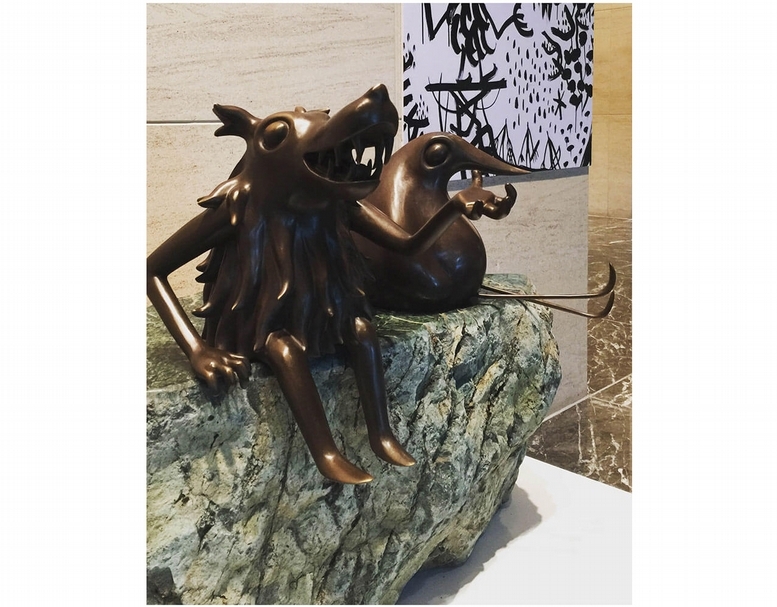 莊雁婷,野餐的好日子,51x76x60cm,銅、墨玉大理石,2016。
