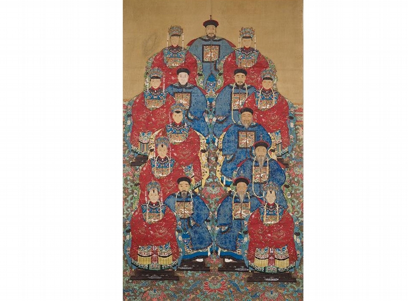 圖12 清代19世紀佚名〈五代家堂像〉,設色絹本立軸,德國科隆東亞博物館藏。Museum für Ostasiatische Kunst, Köln, A 93, 18, ©Rheinisches Bildarchiv, Sabrina Walz, rba_d012733。