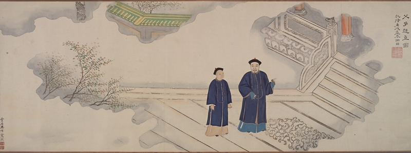 圖6 清代乾隆朝吳焯1790年作〈父子趨直圖〉,設色紙本手卷,加拿大多倫多皇家安大略博物館藏。Courtesy of the Royal Ontario Museum, ©ROM, Photo Credit:Brian Boyle, MPA, FPPO。