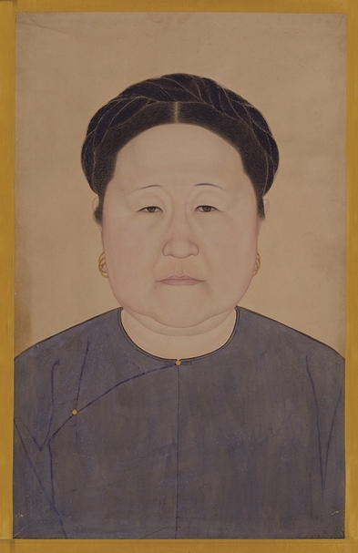 圖2 清代康熙朝佚名〈孝莊文皇后半身便裝像〉,設色紙本冊頁,北京故宮博物院藏。圖為其中一開。©The Palace Museum, Photo Credit:Yu Ningchuan。