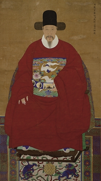 圖1 明代天啟朝佚名〈明熹宗朱由校朝服像〉,設色紙本立軸,北京故宮博物院藏。©The Palace Museum, Photo Credit:Yu Ningchuan。