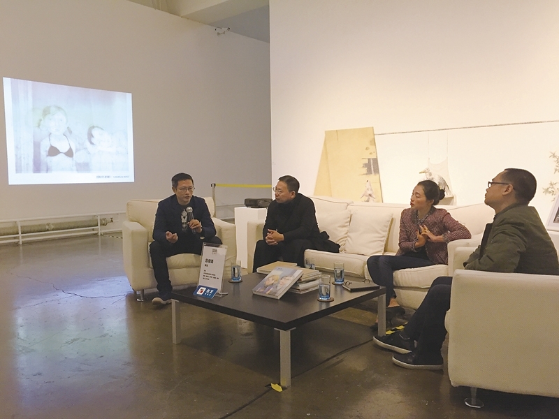 「戲法」開幕式當天舉辦的對談。左至右為:藝術家曾健勇、著名批評家與策展人夏可君、策展人唐澤慧、主持人裴剛。攝影/萬永婷