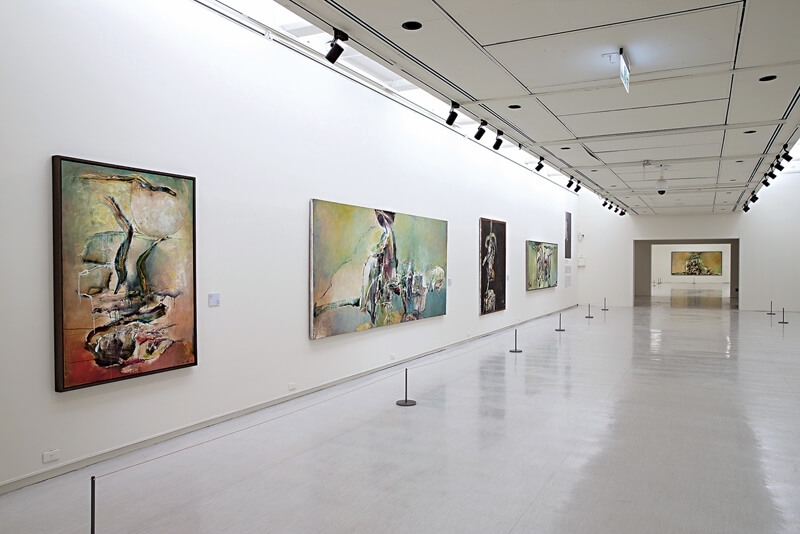 「莊喆回顧展—鴻濛與酣暢」展出一百五十多件作品。圖為展場一景。