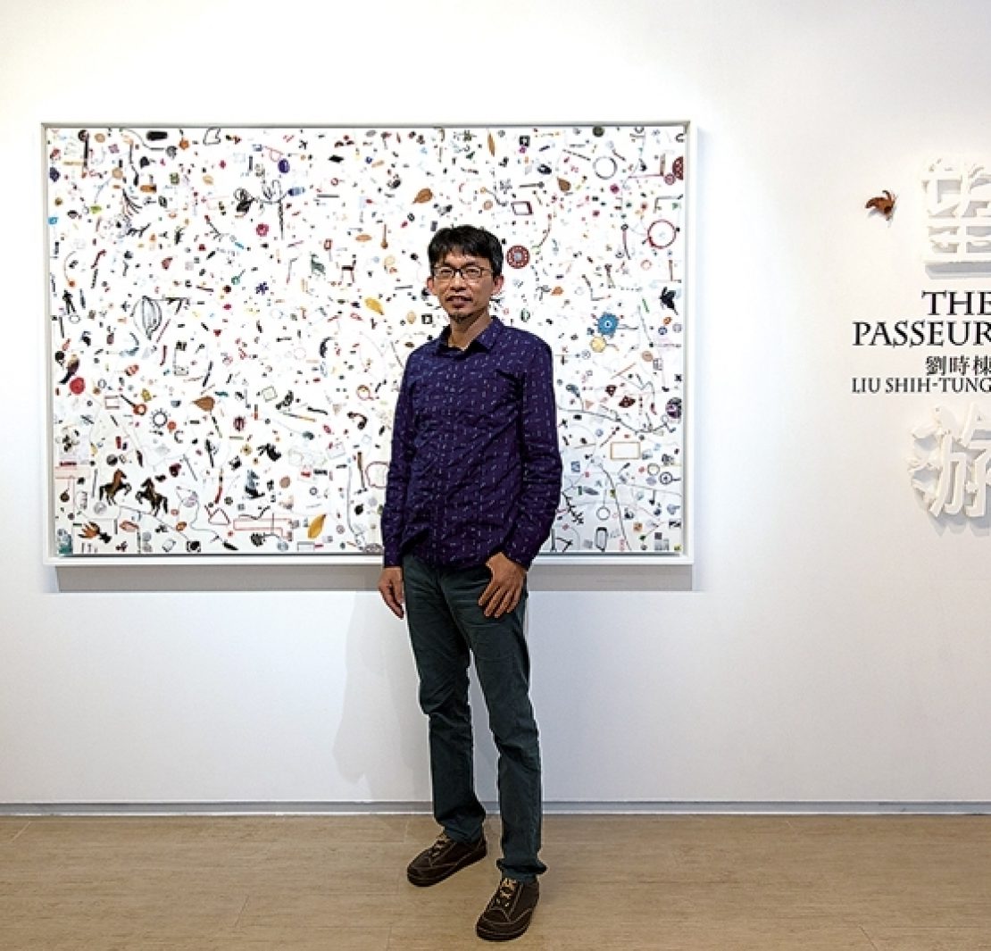 一切皆發於日常。就地取材的拼貼手法,源自對材料的探索與掌握,過程中的實踐、積累、內化、映射無非是一種文人精神的當代延續。亞里斯多德說過:「藝術的本質是模仿。」但如何模仿呢?「像小孩般再現外在事物。」曾表明「創作之於我,是一場冒險遊戲的痕跡」的劉時棟,也在美其名為創作的層疊外(其實更多的是破壞,尤其拼貼這樣即興的手法,隨機又充滿各種可能),追求某個微妙的和諧及敘事邏輯。正是這股奠基於「表現風吹過、水流過的痕跡」的實驗態度,讓劉時棟嘗試了多種方式模擬自然,獲得許多藏家的喜愛。