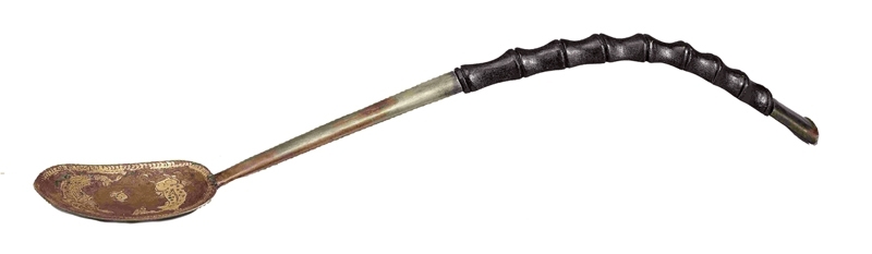 北宋(960~1127)〈銀鎏金嵌漆木柄雙魚紋匙〉
