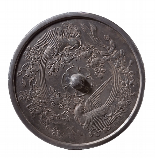 唐(618~907)〈鸚鵡銜枝綬帶紋銅鏡〉
