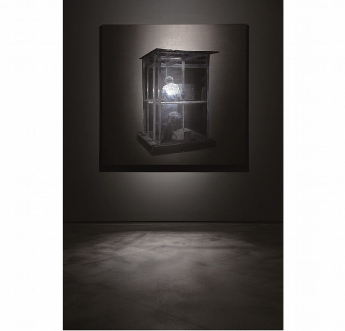 展出的作品題材主要取自於能夠反映光線的物件,像是鏡面、玻璃、水晶礦石等以及藝術家往返於住家與工作室所見的夜間街市景觀。一覽無遺的觀看方式在此並不存在,這些被描繪的對象則有如輪番登台表演獨角戲,置身於全黑的背景之前、明亮的聚光燈之下,被觀者屏氣凝息地專注望著,等待它們吸收並反射光線而呈現出各異形象與光彩;空間被打破、時間被凝結,觀者在悄然的畫面與展場內感受當中的隱喻。藝術家運用媒材的特性,讓光線掌控物件的成像、牽動觀者的感知,並創造無限的可能。正如《光亭》所表現的,一座脫離現實環境、四面玻璃圍成的崗亭,背對觀者的白衣人物散發出奇異氛圍的光芒。