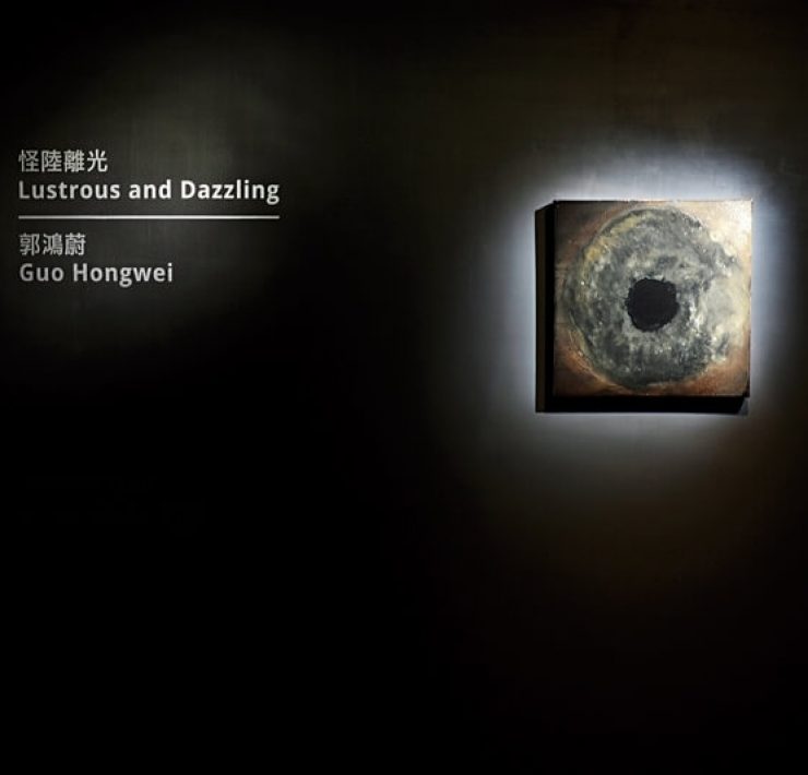踏入百藝畫廊的「怪陸離光」展場,乍看這一幀幀漆黑的作品,或許會認為郭鴻蔚發展了一個全新系列。以往作品可見的斑駁、模糊,運用了顏料與調和劑之間的流動、融合或稀化作用,以呈現時間與記憶的交揉痕跡。這種對材料特性充滿探討想像、帶有實驗精神而成的偶然意味,同樣存在這次的展覽中,而且可以看到藝術家對於視覺圖像與思維邏輯的連結關係之辯證,選擇了更直接、最根本的要素─光。