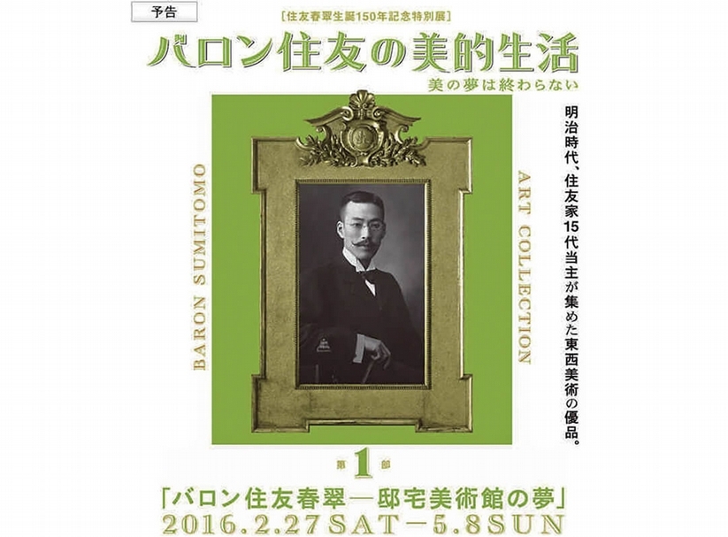 住友春翠(1865~1926)為東山天皇(1675~1710)的六世孫,享有男爵稱號,同時更是住友第15代當家,為住友集團打下企業根基。住友春翠另一為人稱道的是其收藏,於明治、大正時期鑑藏了不少中國青銅器、銅鏡等,爾後成立的泉屋博古館便是以其收藏為基底所設立。今年適逢住友春翠150歲誕辰,泉屋博古館東京分館於2月27日至5月8日間舉辦「Baron住友的美之生活」第一部曲特展「宅邸美術館之夢」。