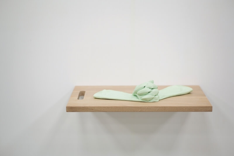 何采柔│日常練習 矽膠手套、樹脂、實木 51×35.5x8cm 2016 TKG+提供
