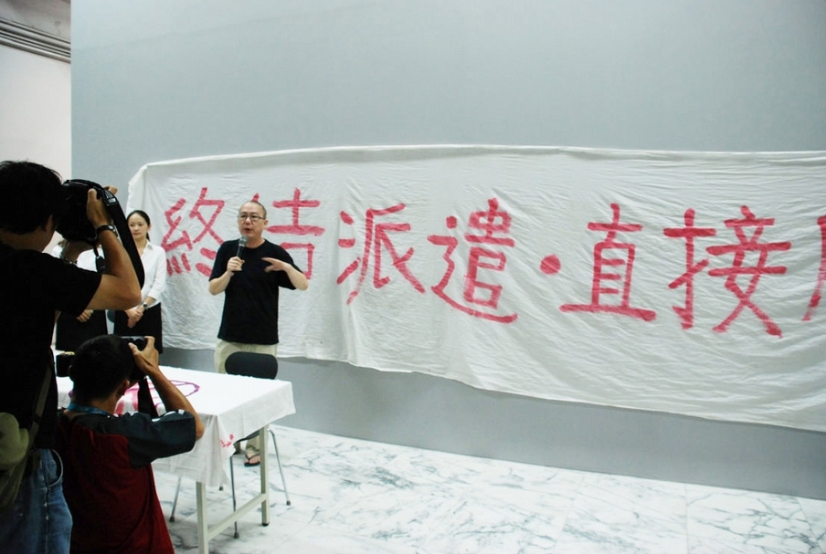 如果藝術界還不算太健忘,或許還記得九年前,國美館就出現「國美館展場服務員派遣事件」的爭議,當時國美館以「警衛保全」的名義,委外保全公司長期雇用同一批派遣員任職展場服務員,卻剝削了20%的薪資,甚至要求女性繳交驗孕報告,引發軒然大波。2010年,陳界仁在台北市立美術館個展開幕活動,即以文化行動方式聲援派遣工事件。歷時一年的抗爭行動,當時的國美館與文建會並沒有任何表達任何解決問題的誠意,僅表示「公務機關的人力進用均應依相關人事規定辦理,無法依他們的訴求直接雇用。在政府人力精簡政策下,遇缺不補,清潔、展場值勤導引等工作只能招標派遣,國美館並無違法。」多年過去,派遣勞務工作生態不但沒有改善,還廣泛地濫用到更多專業工作領域。