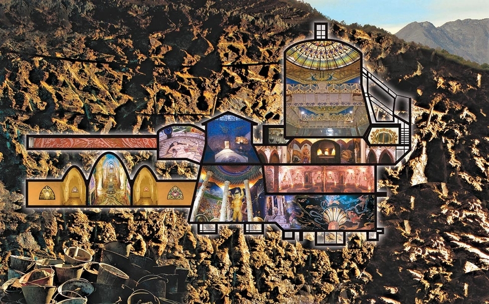 位於義大利北部山區的達慢活生態村聯盟於2005年獲得聯合國頒布「永續經營的示範社區」的榮耀。圖為居民40年來徒手建造的地下建築「人類宮殿」,獲得藝術造詣極高的評價。(Damanhur.org提供)