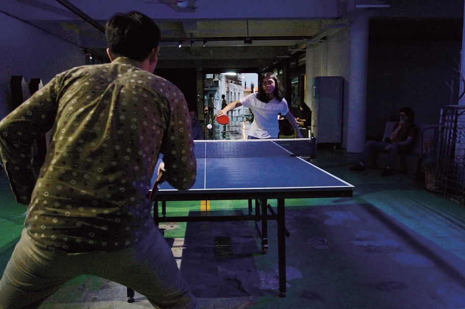 空場藝術聚落兩週年「空場快打旋風桌球賽」。(黃偉倫提供)