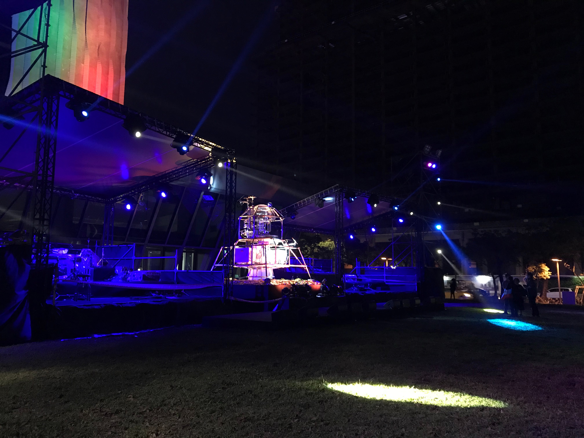 另一件則為突破性的作品《登月(樂)計畫|一個永遠不會忘記的聲音:張雨生》,以三公尺高的阿波羅登月小艇作為外型,氣動式的設計讓作品不需接電更不怕雨淋,作品將張雨生的音樂注入其中,在展覽期間的整點、半點就會自動演出張雨生樂曲的經典片段,有趣的是,在開幕時,創作團隊邀請張雨生的重要音樂創作夥伴櫻井弘二擔任音樂總監,並以搖滾樂團、銅管樂團、合唱團以及知名歌手的編制,與藝術裝置共演,演出當天匯聚了張雨生的粉絲,在綿綿的細雨中,能夠重新品味好久不見的好聲音,此作品更是具有歷史意義,讓認識、不認識張雨生的民眾,都能夠在作品前體會到經典歌曲的美好。《登月(樂)計畫》讓視覺藝術找到與流行音樂合作的新可能,保存、再現音樂的方式不只是透過串流平台,或是像檔案式的呈現,而是透徹地發揮公共藝術互動與推廣的特質,並且讓作品保持開放的狀態。