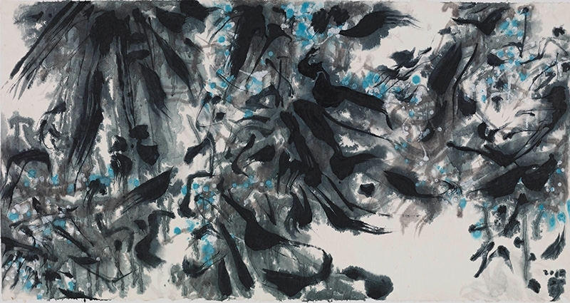張富峻 山雨2009 莫拉克颱風(八八水災) 綜合媒材、惜福宣 77.5×144cm 2009 圖片提供:國立中央大學藝文中心