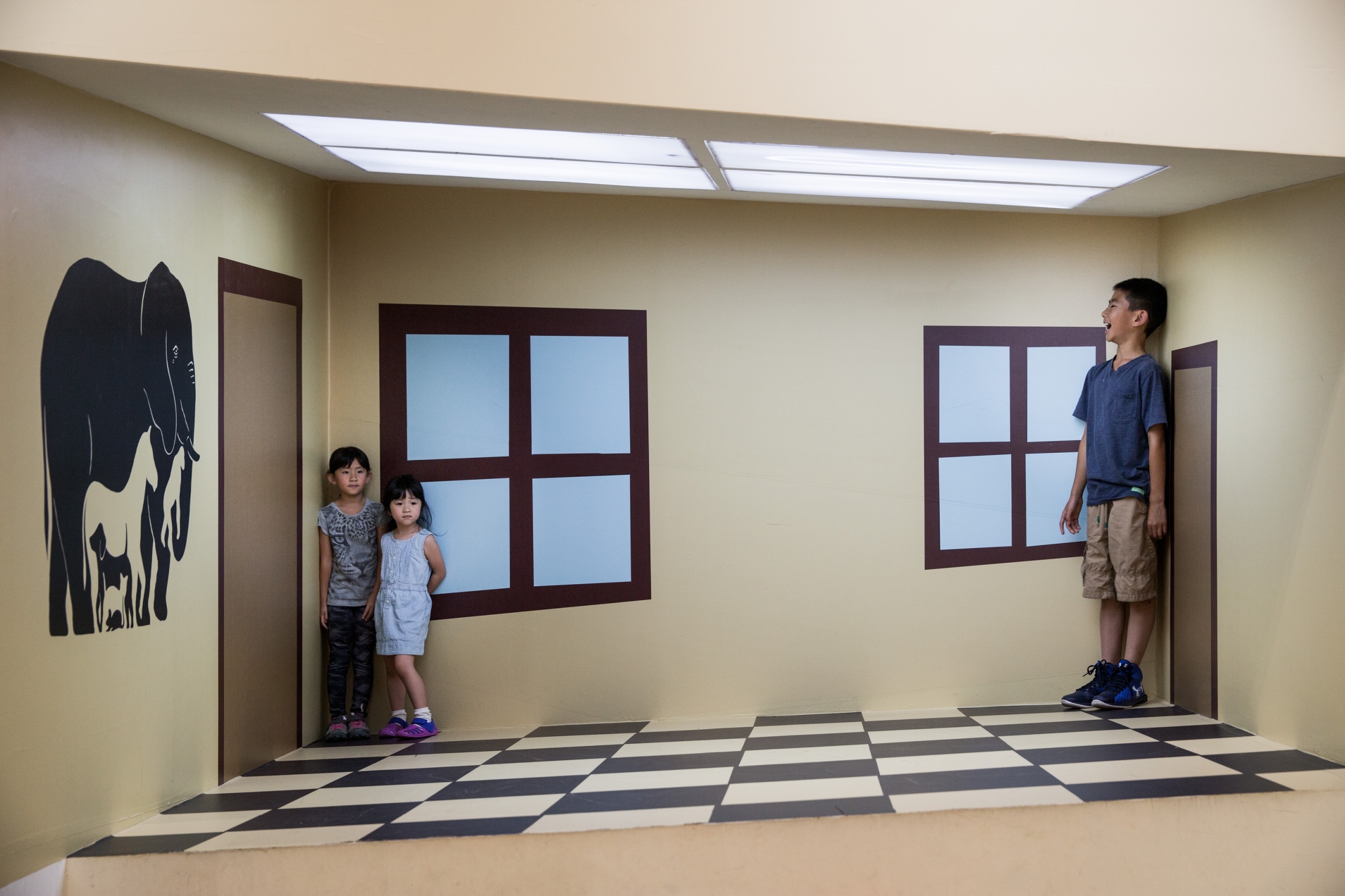 兒藝中心在周間營運的過程,一直有一固定的觀眾群頻繁出現,即是4到6歲的幼兒園的學生整校來參觀,而他們每次前來的人數都是破百人以上。因此兒藝中心展覽在空間上,雖然是對應展示不同區域有不同的教育概念,也具有差異的體驗與參與方式。但很實際功能性的考量,是每當有數量龐大的幼兒參觀群前來,都能被分散安放在整個展區。除了群體觀眾,展覽也會設想一般觀眾大約停留的時間長度,展區也試圖將可參觀的年齡層拉得比較廣闊,讓不同年齡層都有可以被安頓的角落,包括閱讀區、塗鴉區、主題互動區,在展覽企畫發展過程中也會就空間的穿梭等顧慮參訪的流暢性,另外也會搭配館內硬體設施,如工作坊旁就會希望離洗手台近一些,有聲音的作品要獨立隔間等安排。這都是能在參訪兒藝中心時所能體會到,包括家長的休憩區域、場地的安全度、現場的管理問題等,都隱約具有一種母親照料的貼心感。