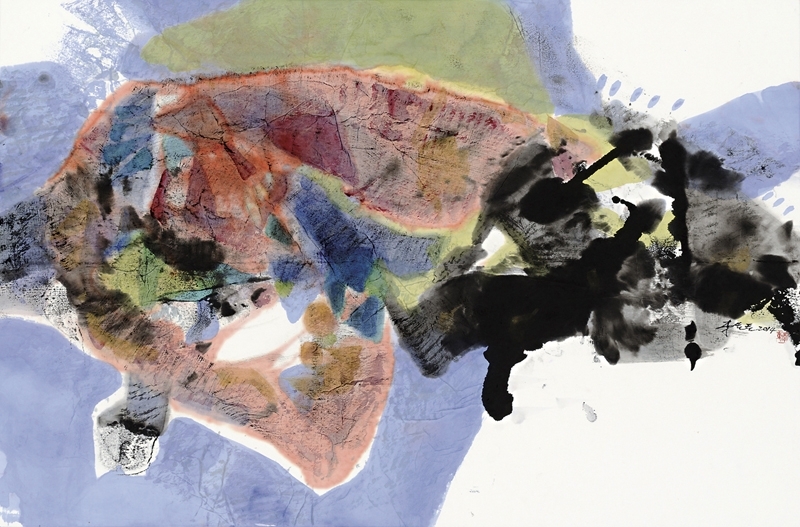 她的繪畫保有一種長青的初心,某種程度她堅持維繫著「現代水墨」對於實驗性的追求,從不受限媒材、題材或如何構成畫面的章法,總是不厭其煩重構技法的各種可能,避開傳統筆法、皴法的限制;毫不遲疑的潑墨、拓印;螢光、亮粉壓克力彩的納入,再以宏觀的格局來收攏尾聲,一套相似的技法結構她總是願意不斷試驗到20、30張以上,構成一個更成熟與具說服力的繪畫系列。「現代水墨的水墨形式發展主題多元寬廣,自然、人文各種關懷都可行,但藝術對我而言就是遊戲。」她解釋畫面各種技法痕跡的發生現場,的確是場赤子之心的恣意遊興,手抹一下,筆轉一圈,如雨點般偶發落在宣紙與棉紙上,如同她對於第一自然的崇敬,於她筆下的第二自然也有著無法複製、別具神采的生命,同樣的作品她稱「第二張我永遠畫不出來。」是與偶發的平和相處,也是不重複自身的一種許諾,「我的技法總是在實踐中累積出來。」但從不刻意去想技法如何經營,不讓框架生成,而是讓技法在偶遇中萌發。