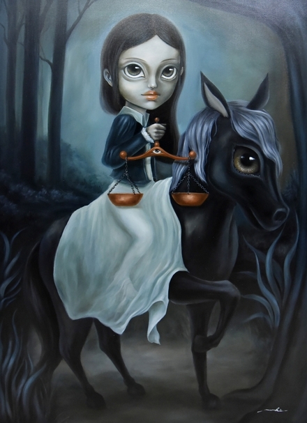 王偉曾設計許多膾炙人口的圖像看板與公共藝術彩繪,尤其擅長透過插畫敘事語言,塑造出一個陰鬱灰暗又純真瑰麗的童話世界。作品風格以暗黑童話為創作方向,主要用誨暗的色調搭配可愛的大眼女孩,來表達對這世界的看法。雖然作品乍看之下,似乎帶點淡淡的憂鬱有些悲傷,其實只是想告訴大家:「不管世界多麼灰暗、多麼詭異,一定總有許多可愛的人、可愛的事物圍繞在我們身邊。只要你願意聆聽周圍的聲音,珍惜我們身邊所擁有的,你就會擁有力量無所畏懼。」