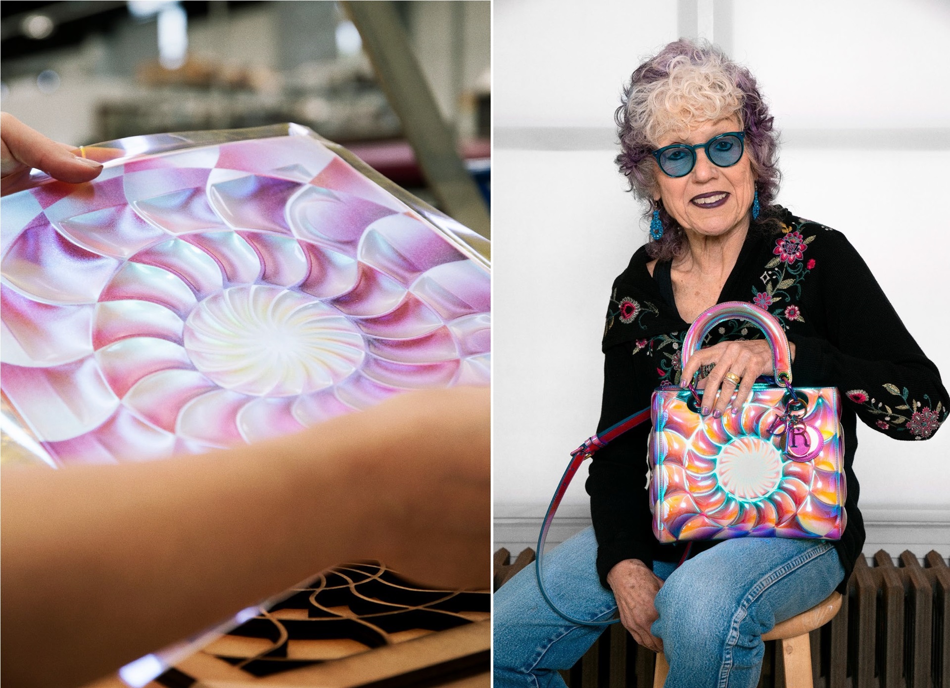 藝術家們以其既定的創作媒材或風格,在Dior Lady包款輪廓中,發揮其對於藝術與時尚合二為一的想像。非洲馬達加斯加藝術家Joël Andrianomearisoa以「Lady Dior 迷宮」為主題,打造浪漫的作品,材質運用皮革及拉齊米爾(Radzimir)絲質布料而製成;中國藝術家宋冬則是採用木紋樹脂邊框、鑲嵌多彩鏡面,來表現打開的一扇扇「窗戶」,象徵著自由與開放。而知名的女權主義藝術家芝加哥,將包款以科技布料處理為高振頻彩虹視覺效果,螺旋和貝殼的線條,寓意女性的豐富與性感。