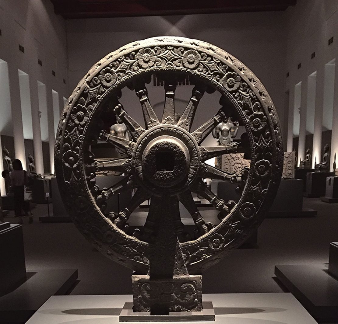 法輪石雕是這個文明遺留最亮眼的藝術作品代表。佛教初期不崇拜偶像,在還未以具體人形表現佛陀形象之前,是以各種能說明祂生平事蹟的符號為代表,「法輪」便是釋迦牟尼悟道後在鹿野苑「初轉法輪」的代表符號。作為佛陀初次宣說佛法的象徵,「法輪」最早可見於印度的浮雕,如公元前3世紀阿育王石柱之柱頭、紀元之初桑淇(Sanchi)和巴乎特(Bharhut)地區的浮雕、3世紀南印度阿瑪拉瓦提藝術等都可見到法輪圖像。除了揭露釋尊生平事蹟的重要場景,法輪也代表佛教的教法,因此法輪的轉動代表著佛法的傳揚。此外,法輪在印度也代表宇宙的救世主或理想化的君王(轉輪聖王)。傳說中,轉輪聖王能夠旋轉金輪,證明其統治權力並代表在世間的至高地位,這樣的概念也成為東南亞各國王權的基底。