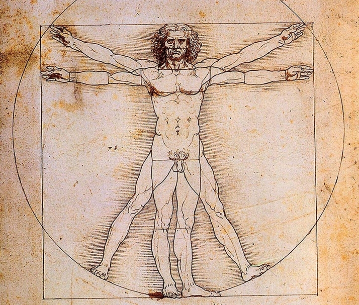 達文西所畫的《維特魯威人》(Vitruvian Man),描繪了公元前一世紀羅馬建築師維特魯威,對人體結構比例所作的研究。它演繹了「黃金分割」的概念,亦即人體各部分的完美比例。