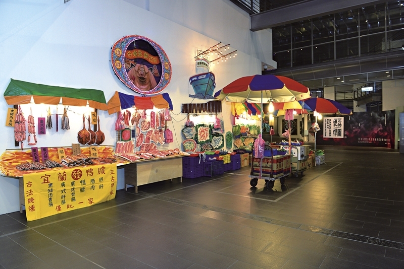 唐唐發的拼貼裝置《擺攤》、《流動菜攤》。(圖/國立台灣美術館)
