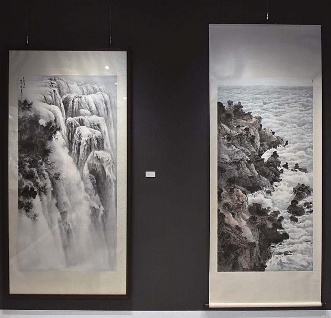 林錦濤2013年作〈銀河倒瀉〉及〈和平島奇岩〉,皆為182×91公分。攝影/洪國峻。